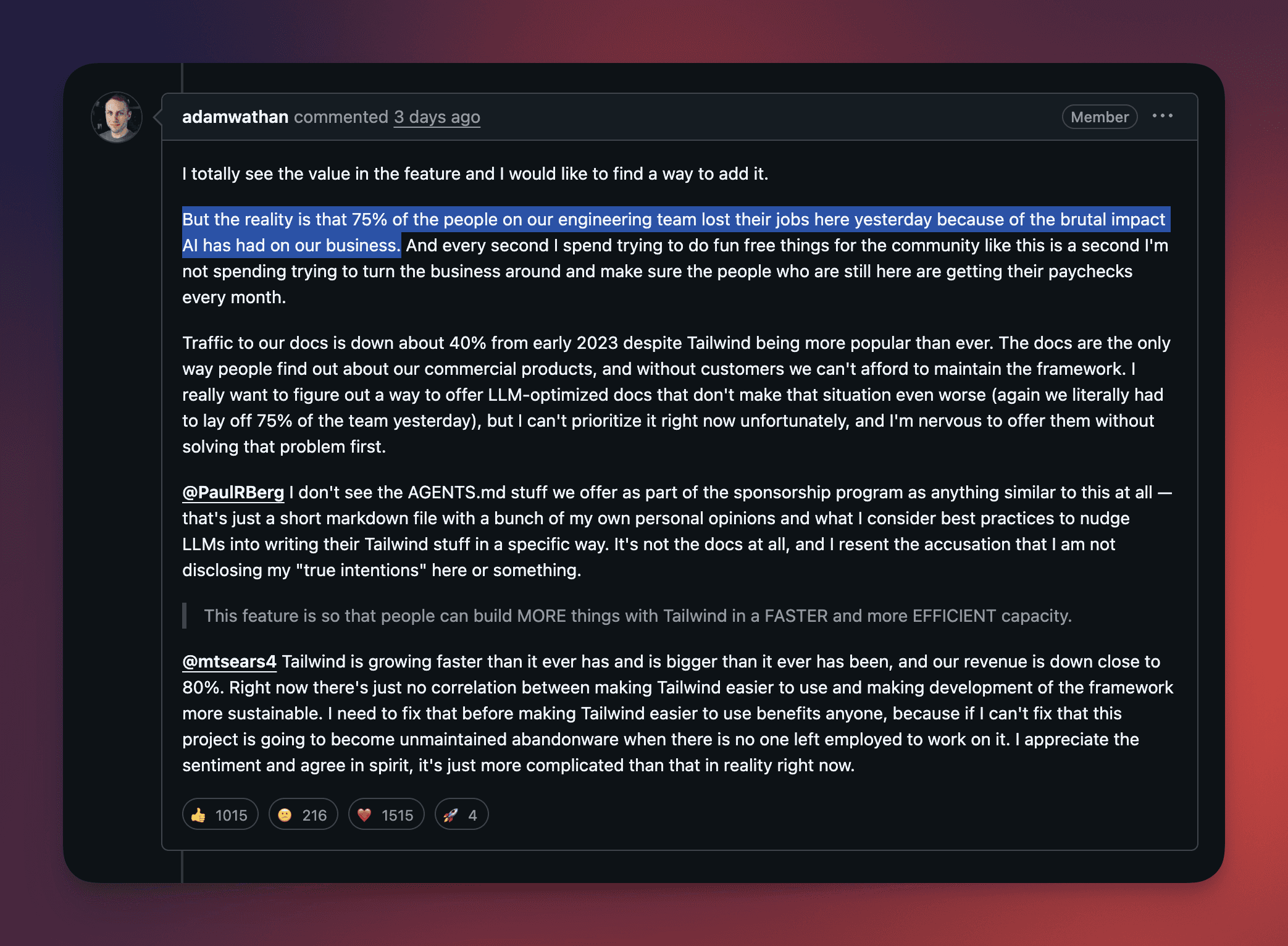 Why did Tailwind fire 75% of their engineers?