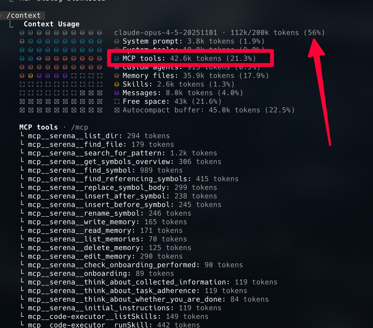 Just 5-6 MCP integrations will fill up your context window and you can't even do anything. You connect Figma, Playwright, GitHub, a couple custom servers, and suddenly 30-50% of your context is gone before you type a single prompt.