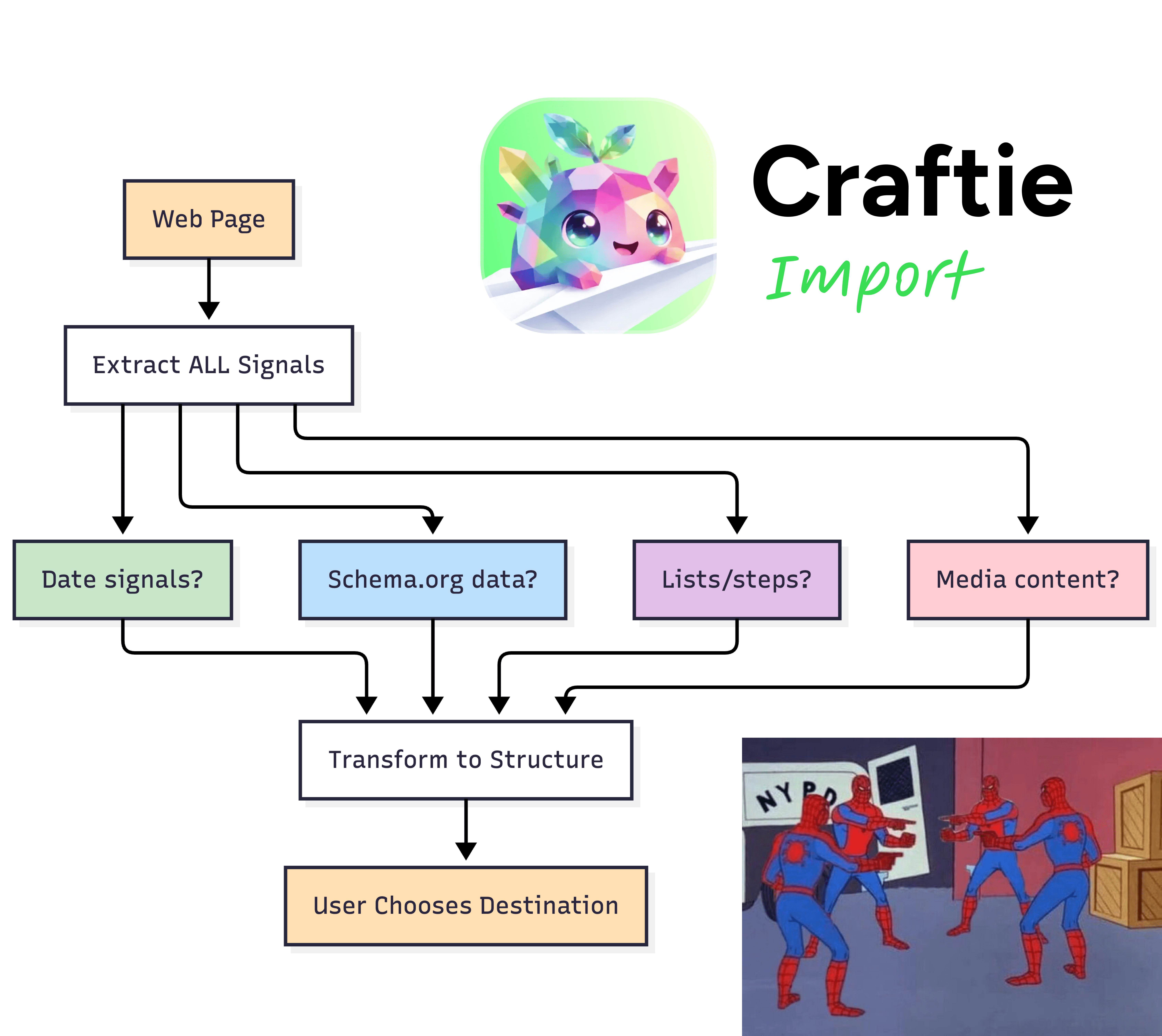 Most web clippers route content based on what type of page you're on - recipe pages get the recipe handler, event pages get the event handler. But that breaks when content doesn't fit neat categories.