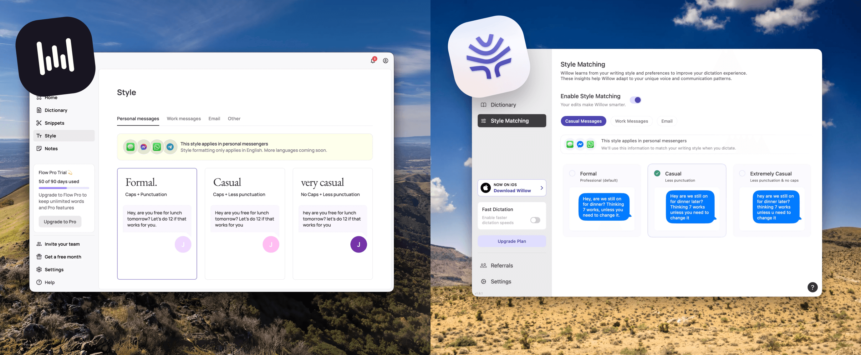 i'm being serious. been using wispr flow for months. checked out willow's website, mac app, ios app. i consolidated everything into 3 tips that could make willow an obvious choice over everyone else for b2c and b2b.
