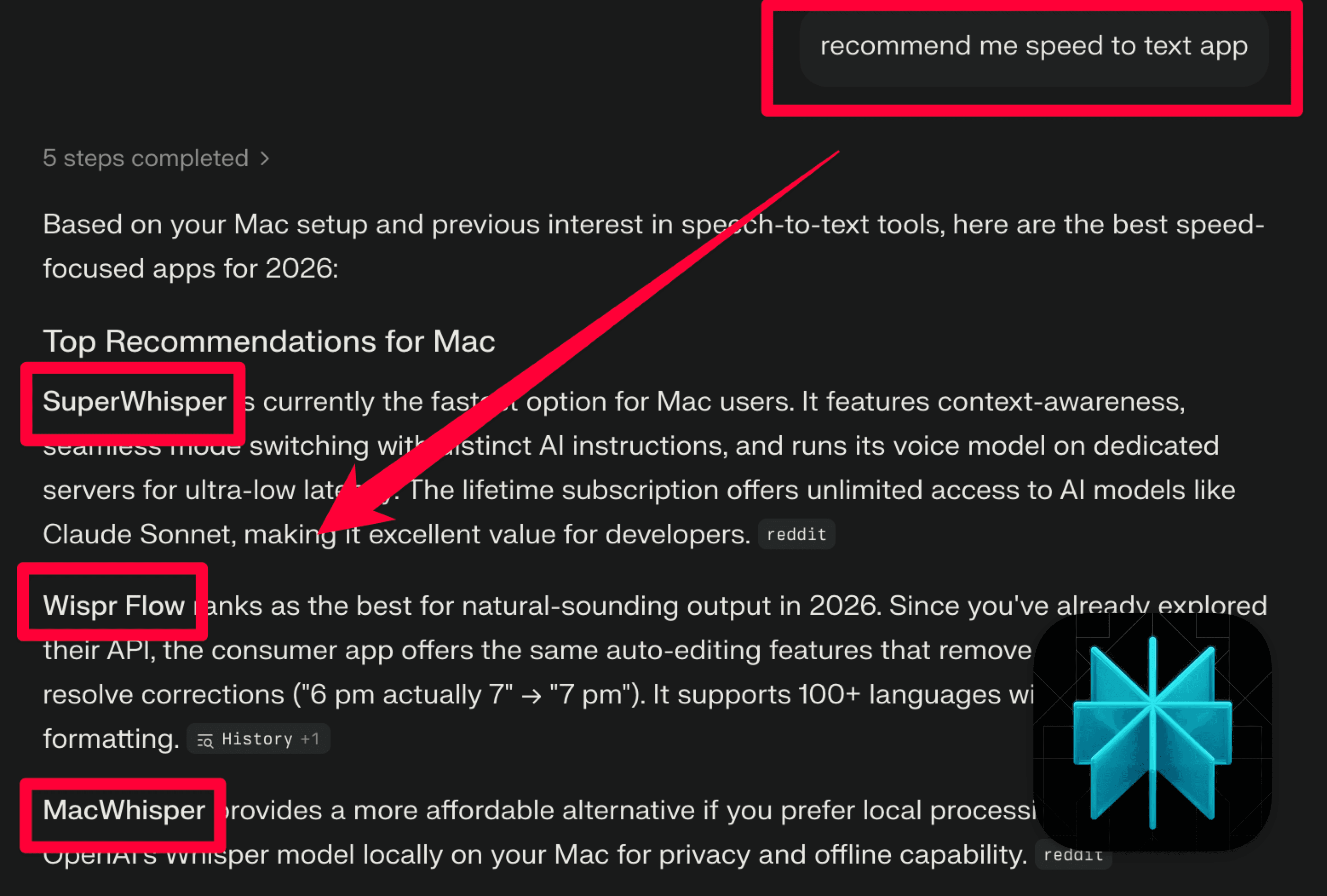 superwhisper: half the price, more features, better website, shows up in AI search results. active on twitter. it's a growing threat imo